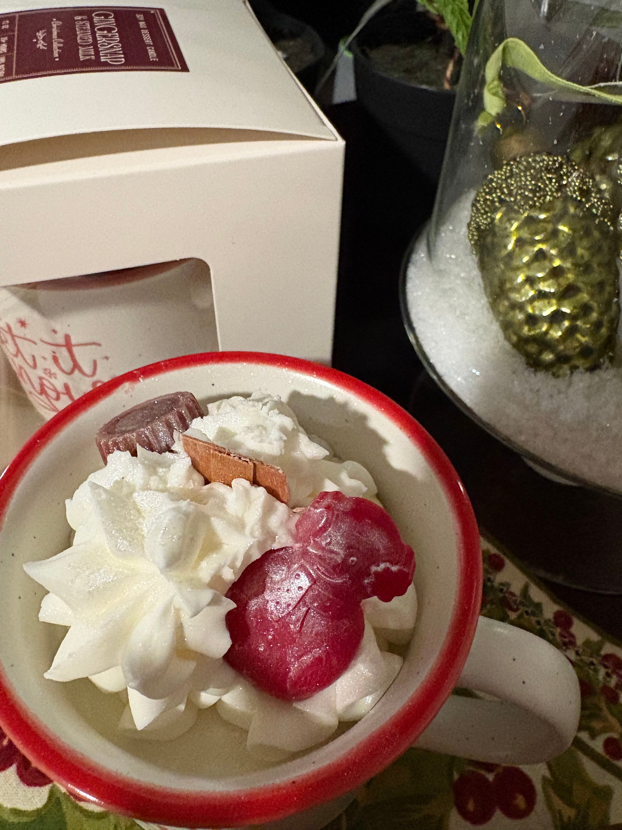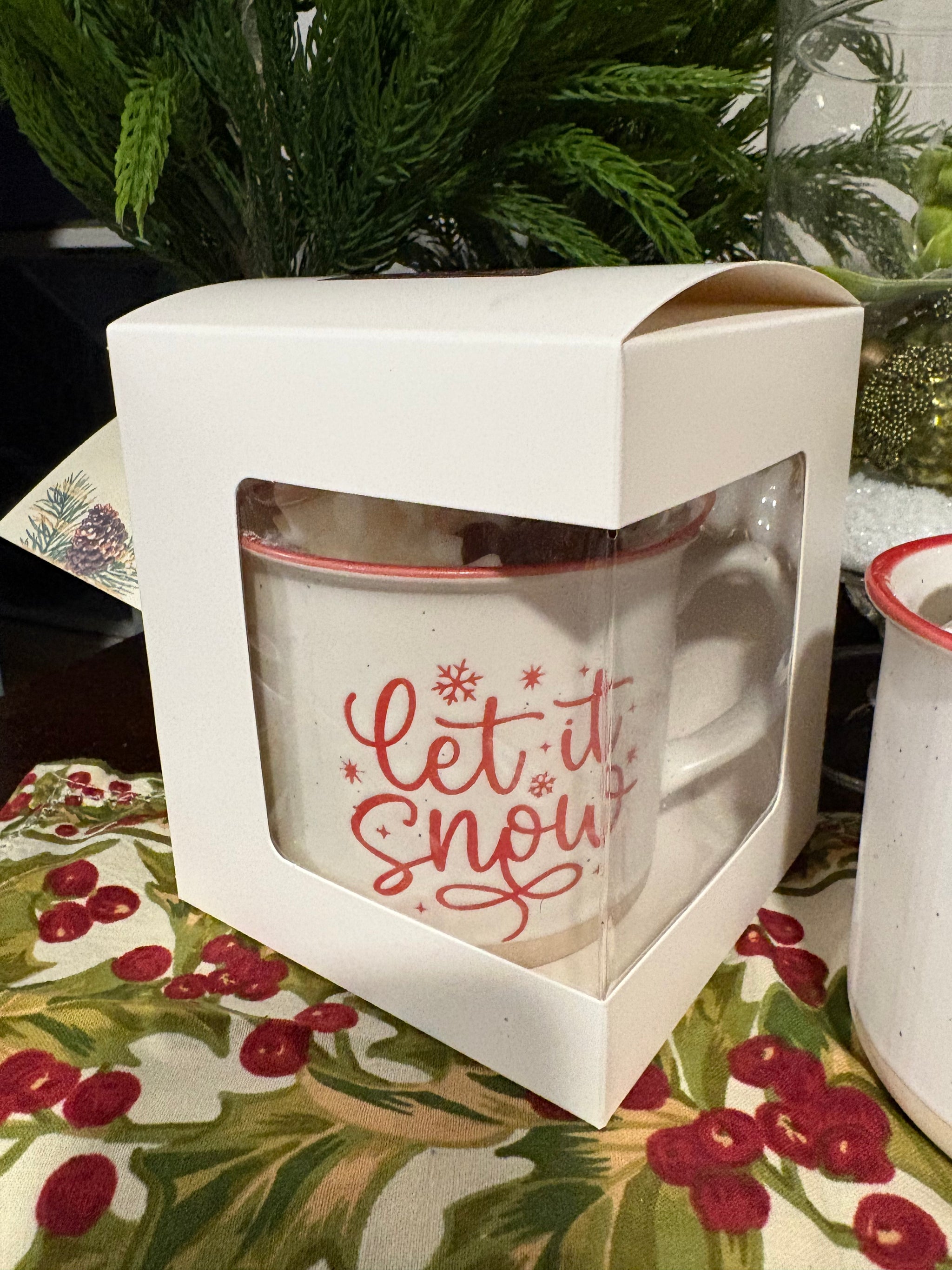 Handcrafted from our studio, these Hot Chocolate Candles feature a whipped soy wax and piped frosting atop a solid candle in a festive "Let it Snow" mug. With 4 delectable scents available, choose from a creamy Whipped Hot Chocolate, Gingersnap Cookie & Steamed Milk, a sweet Peppermint Hot Chocolate and new Sugar Cookie & White Hot Chocolate.