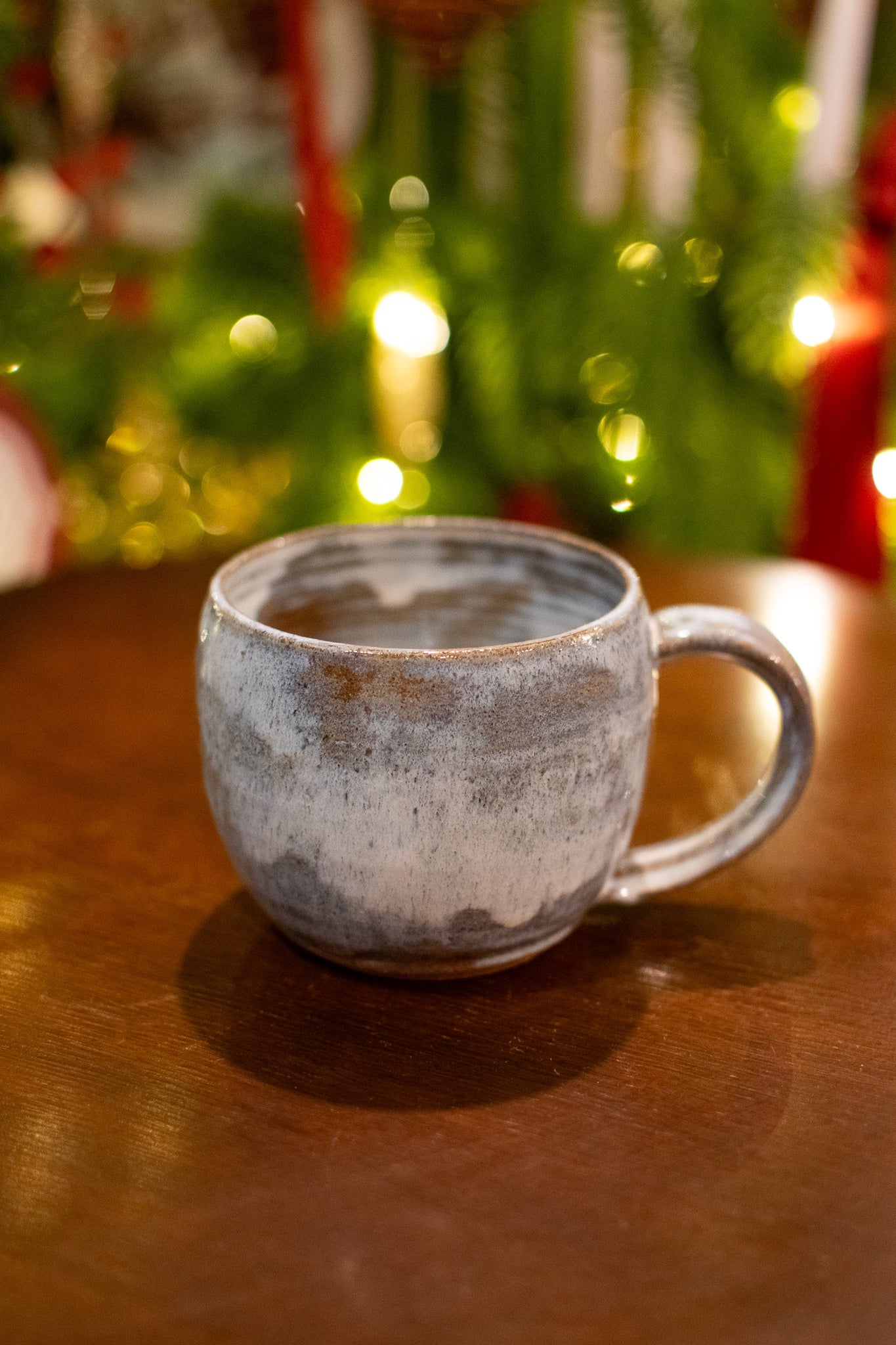 With soft layers of ash grey, misty lavender, and earthy clay peeking through, this moody handmade mug evokes the quiet stillness of dusk settling over a snow-covered landscape. Each one is lovingly wheel-thrown with a rounded form and tactile finish, making it a beautiful companion for slow winter mornings or twilight tea by the fire.