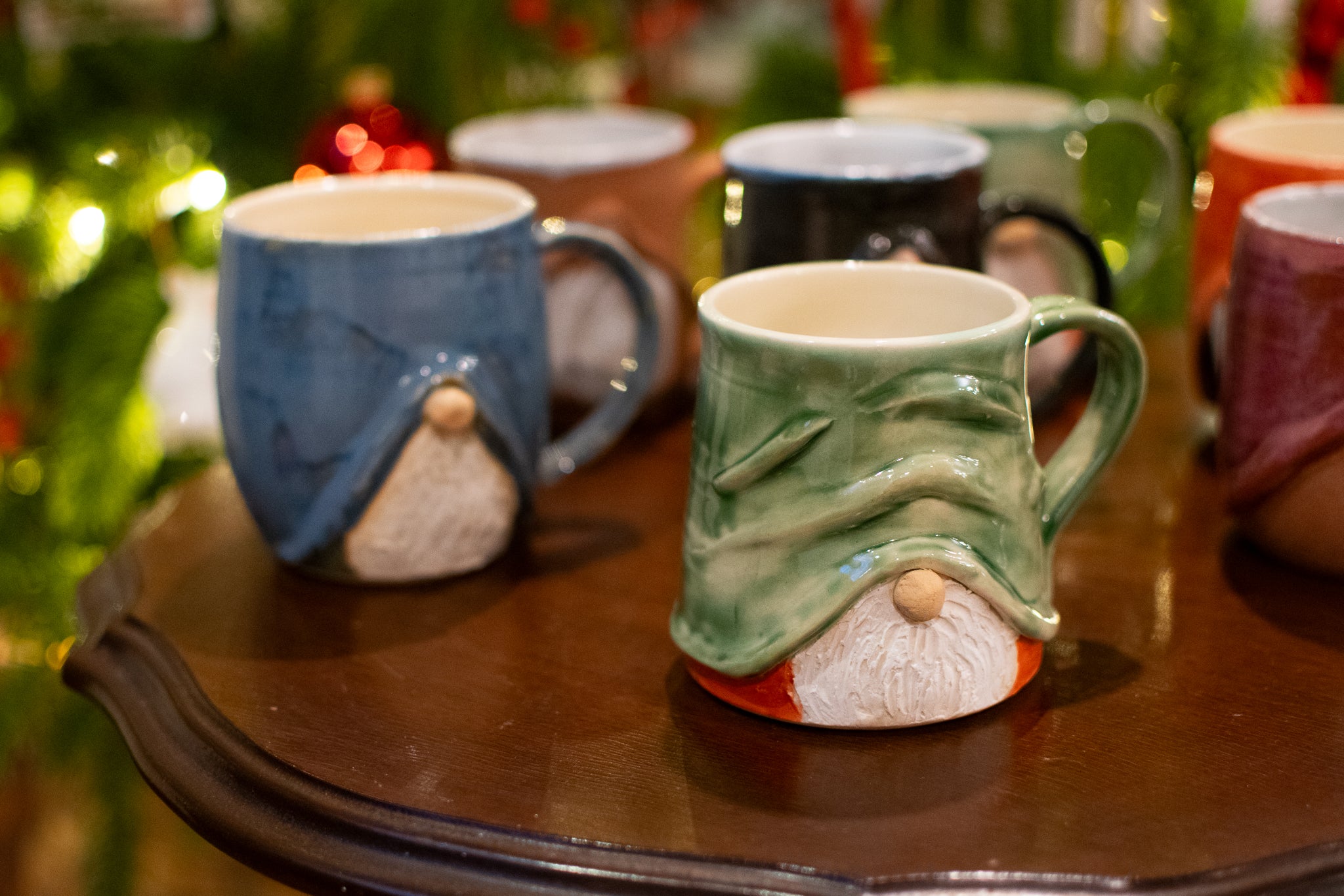 Handmade ceramic mugs with 3D sculpted gnome features