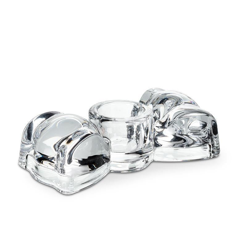 Graceful and stylish, this sculptural glass taper holder redefines elegance with a playful twist. Designed in the shape of a beautiful bowtie, it captures the essence of both sophistication and charm. The clear glass construction allows light to dance through every curve, creating a luminous display that feels both modern and timeless.